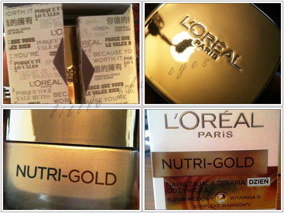 NUTRI GOLD- krem od L'Oreal Paris, bo to o nim właśnie mowa jest dla mojej skóry cudownym, miodowym odżywieniem. Tak, tak, odżywieniem... bo oprócz nawilżania, równie dobrze odżywia, dzięki czemu twarz jest gładsza, nabiera kolorów i promienieje.